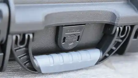 Opening the box, a black case with a low-glare matte finish and a bit of texture greeted me. Its texture isn’t aggressive, yet it offers better grip than a perfectly smooth finish would. The flush-folding handle has a grippy grey insert that adds a bit of contrast. And the sliding locks of the PowerClaw Latching System also have grey inserts. An automatic pressure equalizing valve resides in the space protected by the case handle.