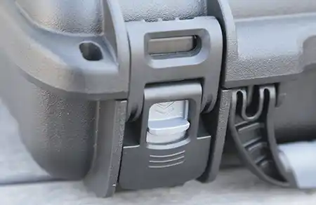 Requiring two simple but separate actions to open the latches serves multiple purposes. First, it’s very secure. Your case is not going to open by accident. Second, when you want to open it, it doesn’t take a huge amount of effort. If something gets jammed under either the top or bottom half of the latch, it’s still not going to pop open. The only way that is going to happen is if enough force is applied to destroy the latch completely.