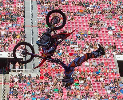 Third, action sports are safer than they look. I’m not actually suggesting we should all launch ourselves off a big ramp without a second thought. For most of us, that would no doubt result in injury. But after watching scooter riders and skaters crash repeatedly, then get up and walk it off, it’s clear that safety in ramp design and materials is a priority. And the same goes for the FMX ramps. When you launch a motorcycle 75-100 feet across a stadium, there is a certain amount of risk. Again, ramp design and materials, along with plenty of math (physics, actually) have resulted in most athletes walking away from a crash.