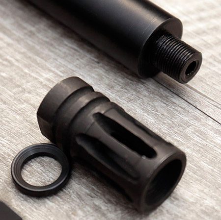 Now, if it was up to me, I would have documented every second of the process. Because I could sit and watch barrels spin in a lathe all day long. But I think that short video summed it up. Obviously, he can do more than just Charger barrels. Given that they are so hard to find right now, I think that buying a take-off rifle barrel and having him cut it down and thread it for a Charger is a viable alternative to waiting months for a barrel for your next compact suppressor host. As you can see in the photos below, I’ve now got my flash hider on my Charger. And when my suppressor is finally out of NFA jail, I can throw that on there instead.