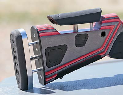 Safeguarding your investment is a lower butt stock protector at the rear. Up front is a similar part covering the underside of the forearm. And the grip area gets the same treatment. These are the spots where some rifles see wear and abuse. Covering those contact points may not be to everyone’s taste, but the result is a stock that looks great, year after year. All the wood, metal bit for the adjustments, and the protector pieces add up to a stock that weighs about 3 pounds.