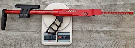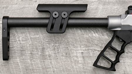 For taller optics, such as scopes, there is a fully adjustable Nylon12 riser. This is a two-piece setup, with a block and adjustable cheek piece. The reversible block gives a huge range of adjustment, from just off the carbon tube, to well over an inch of elevation. No matter how tall your optic is, this should accommodate it. It’s a $75 option.