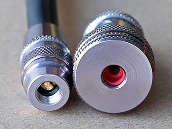 There is a lot to like about this simple, yet elegant chuck. First, the machine work is easy on the eyes, and the hands. That knurling makes an ideal gripping surface. You’ll notice it’s for Presta valves, but don’t panic. Simply unscrew the end to reveal the Schrader chuck. Got disc wheels? No worries, there’s a chuck available (at an extra cost) for them too. And the designers moved the clamp for the hose, so whichever chuck you choose, it stays in place when not in use. There’s even a handy little bleeder valve built in too, in case you need to let out some air.