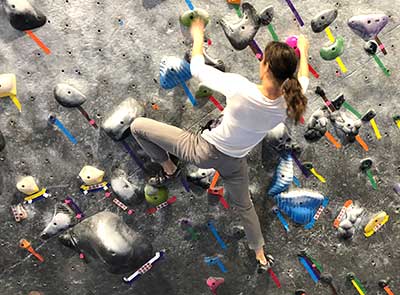 My lunchtime office yoga testing escalated to an impromptu climbing session. Wearing the Chinos that are designed to stretch up to 10x that of traditional woven fabrics, climbing seemed like a perfect test. I climbed my normal rated routes without restriction. The Chinos are incredibly supple, strong and so light it felt completely natural to climb in them. The really amazing part is that I was able to get off the wall, pedaled to the office, and walk into another meeting while still feeling fresh.