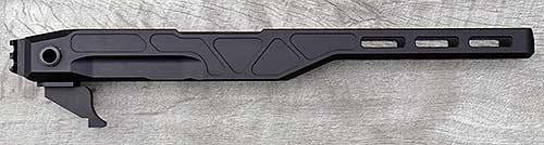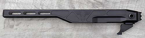 Compared to their Odin chassis, the Deep Six offers more length and rail space, and more width. Want to run a 4″ barrel and fat can for “Hollywood” quiet? That’s easy enough with the extra width. It’s got a full 1.310″ inner barrel channel. I’m not sure there’s a rimfire suppressor out there big enough to be an issue with all the roominess. Any AR grip without a beavertail will fit the grip adapter. You might be able to modify one with a beavertail to fit as well. Both sides offer nitrided steel QD inserts, for anyone wanting to run a sling. And with a total of nine MLOK slots on the underside and sides, it’s got multiple accessory mounting options too. If you’ve got something you want to hang off your Charger, there’s certainly a place to hang it.