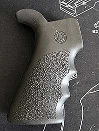 For the grip, my preference is the tried and true Hogue OverMold with finger grooves and beavertail, in basic black. Comfortable, fits my hand well, and grippy when dry or wet. It pairs well with the chassis, as the beavertail protects your thumb web from the castle nut. The SKU for this model is 15020, and MSRP is $29.95, but you can find them for about $20. It was in my spares box, probably because I picked it up at a fair price.