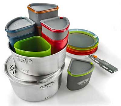 GSI Outdoors delivers on a diverse and compact cooking and serving solution with the Glacier Stainless Camper. Like its predecessor, The Pinnacle Camper, the Glacier Stainless Camper fits an incredible amount of cookware and serving ware in the belly of a 3-liter pot. The greatest difference being that they are using stainless steel for the cookware (I‘ve owned the Pinnacle Camper for a long time and I‘ve written a comparison between the two below). If you are unfamiliar with the Pinnacle Camper and the new Glacier Stainless Camper, read on.