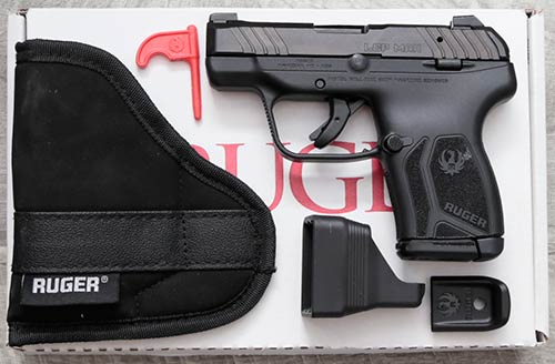 Inside a somewhat small cardboard box was the LCP MAX with a chamber flag installed. There was a single 10-round magazine with a standard baseplate. Surprisingly, there was a little pocket holster in there as well. In addition, Ruger includes a lock and magazine loader, along with the instruction manual (with a Ruger sticker inside). My 2XL hands are too big for the included finger grip extension baseplate, but it worked well for my wife. A 12-round magazine is also available at ShopRuger.com, and they even include a 20% off coupon to get you started.