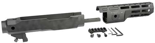 The sides of the chassis and handguard have built-in anti-rotation QD sockets for slings. Thanks to the angled design of the handguard, there are 8 sides of M-LOK™rail slots. At first, I thought the 8 sides were overkill. But that does give it a slimmer profile, and the rounded shape is more comfortable. In addition, each slot equals less weight. And in my humble opinion, the lines are just right for this style of firearm. Midwest Industries thoughtfully includes a 5 slot polymer rail too.