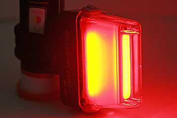 There are six mode in total – four flashing patterns, plus a continuous high and low. Pressing the tiny button on the top of the light cycles through them. Note that there is a rear-facing set of LEDs, and another set in the body. First up is all of them flashing together, for up to seven hours. Next is the rear flashing only, with the body on continuous for six and half hours. Then they alternate, like a police car, for up to seven and a half hours. Rounding out the flashing modes is a slow, pulsating flash for up to six hours. Finally, there is the high continuous for four and a half hours, or low for up to thirty hours. For continuous light, you’ll get six hours at 350 lumens, three hours at 700, and ninety minutes at 1500. As noted, all modes are controlled through a single top-mounted button. Your high school science teacher would like me to remind you that all run times are approximate, as battery state and ambient temperatures may cause variations. So don’t expect a full battery to perform the same in both summer and winter.