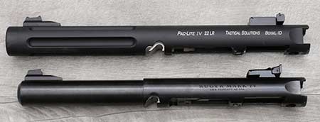 Worth it? Yes. There’s nothing I don’t like about the Lite models, but this certainly looks better. It’s just that if the barrel wasn’t the serialized part, they would probably cost a lot less. There would be less paperwork for the manufacturer, retailers, and end users. Would less paperwork to comply with the government lower the cost of production? Would that lead to lower retail prices, and more in circulation? Economies of scale, or something like that? Maybe. The barrel is awesome, but I did pay for shipping twice, and two transfers. To build a .22 pistol. If you have a steel barrel, it’s a viable option. If you have a Lite, then it’s a much tougher call.