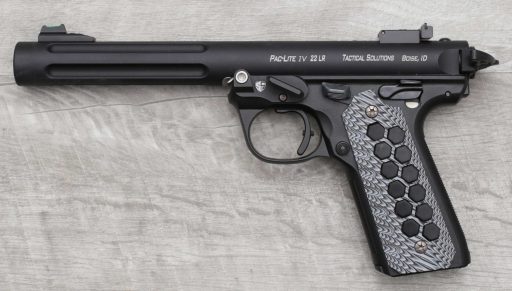 My first Ruger MKIV currently sports a matte black Pac-Lite IV 6″ fluted barrel from Tactical Solutions. But that’s not how it left the factory. In my quest to get the least expensive base firearm, I started with the 5.5″ bull barrel. It shot very well, and I was quite happy with it. Until I handled one of the Lite models. So I bought a Lite (all black) and tried to convince my wife it was for her. That didn’t work, so I bought a purple Lite, which she loves. At that point, my wife and daughter each had a Lite to shoot, leaving me with my heavy barrel model. And as much as I liked it, I really wanted a lighter barrel. Not wanting to compromise, I went all-in, and bought the Pac-Lite.