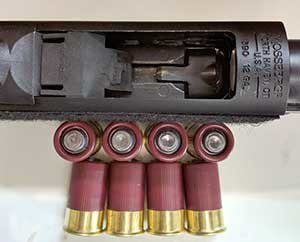 With the Mini-Clip installed, I loaded up some mini birdshot, buck, and slugs, in random order. Firing them was drama-free. Very little recoil, and the muzzle never came off target. As I worked the slide, each chambered and ejected just like a full-size shell. So the OPSol Mini-Clip worked as designed. Sadly, I left all my $1.10 empties on the ground at the range. So much for reloading them. When I was done, I popped the Mini-Clip back out so I could run some other ammo. It comes out easy enough, but take a bit of care not to catch it on an edge and tear it up.