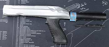 This stock set has quite a few useful features, at a reasonable price. There’s a barrel insert for standard taper barrels. Remove the insert, and you’ve got a channel for your .920 barrel. Although mine was shipped without one, it comes with an M-4 style adjustable stock, which is pretty nice. The stock includes a recoil pad and some sling attachment points. If you’re not cutting it up to fit the original KAK Blade, you can swap if for your favorite stock too. Of course, if you have the Blade 2.0, skip the whole part about cutting up the buffer tube. It should fit without any modification. But what’s the fun in that?