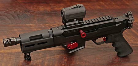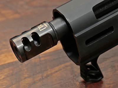 Right now, I’ve got a TandemKross Game Changer Pro 9mm compensator. It probably helps a little bit, but this is a heavy 9mm “pistol” with a tungsten weighted bolt. There might be some felt recoil, but not a lot of muzzle rise. And despite my own lack of an appropriate one, the best muzzle device for this is a suppressor. In the words of Ferris Bueller, “If you have the means, I highly recommend picking one up”.