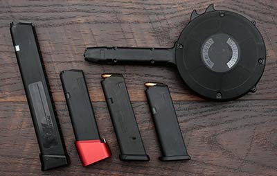 Glock magazines may have gone up in price recently, but the Magpul versions I have been using have been just as reliable. Some users report mixed results with other aftermarket brands, which is why I’ve mostly stuck with Glock and Magpul. My favorite local gun shop has reported that the KCI 50 round drums seems to work pretty well too, so that’s another option.