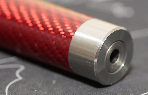 Each “off the shelf” .920″ barrel is built around a 416R stainless steel blank, with a carbon fiber sleeve. Twist rate is 1:16, and they’ve got Bentz chambers. Total weight with the included 1/2 x 28 thread protector is 23.2 ounces. That’s a savings of 5-6 ounces over a factory barrel, but with a generous increase in rigidity and accuracy.