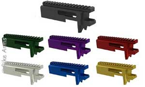 The Elite22™retains the right side ejection port, and uses a standard bolt. It does not use a standard charging handle though. So a color-matched, spiral fluted charging handle is included with each one. Color options are matte black, “stainless” anodized clear (silver), blue, gold, green, purple, or red as well.