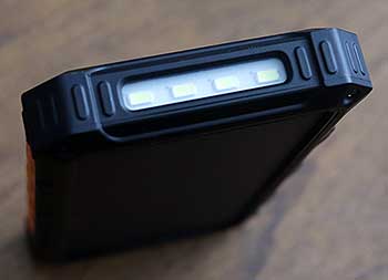 At one end of the ROC Waterproof 10,000mAh Solar Wireless Charger are four white LEDs. These are the flashlight, which is activated by double-tapping the power button. Additional taps allow you to scroll through different modes. It will flash slowly, or a combination slow/fast flash. That second one is three short, three long, and three short flashes again. For those that know Morse Code, that’s S.O.S. There are also four very small blue LEDs which indicate charging and state of charge. Finally, another small green LED lets you know that the solar panel is sending juice to the battery. Simple to use, with minimal moving parts.